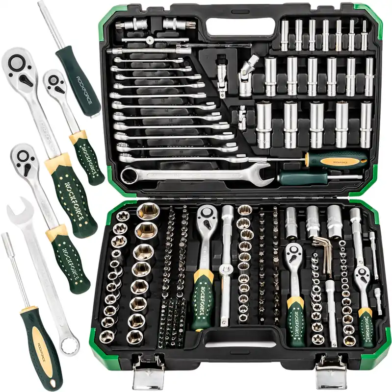 Uniwersalny zestaw narzędziowy składający się z 216 elementów renomowanej marki Rockforce.