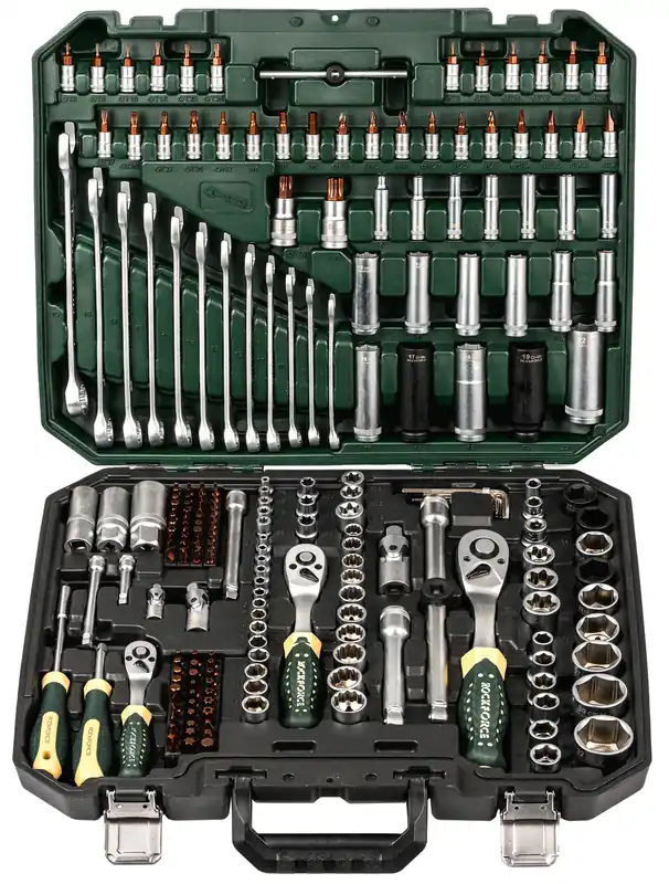 W odróżnieniu od tanich zestawów kluczy, elementy w zestawie Rockforce nie wypadają ze swoich miejsc a zapięcia mocno trzymają złożoną walizkę i uniemożliwiają przypadkowe jej otwarcie np. w bagażniku.